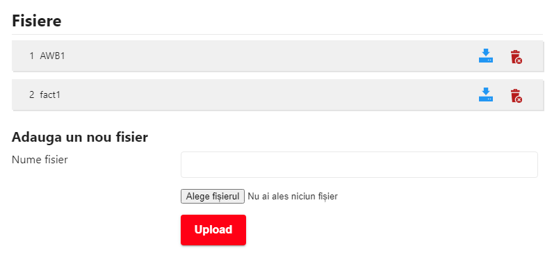 La finele paginii se incarca aceste 2 fisiere (AWB si factura) precum in imaginea de mai jos.
